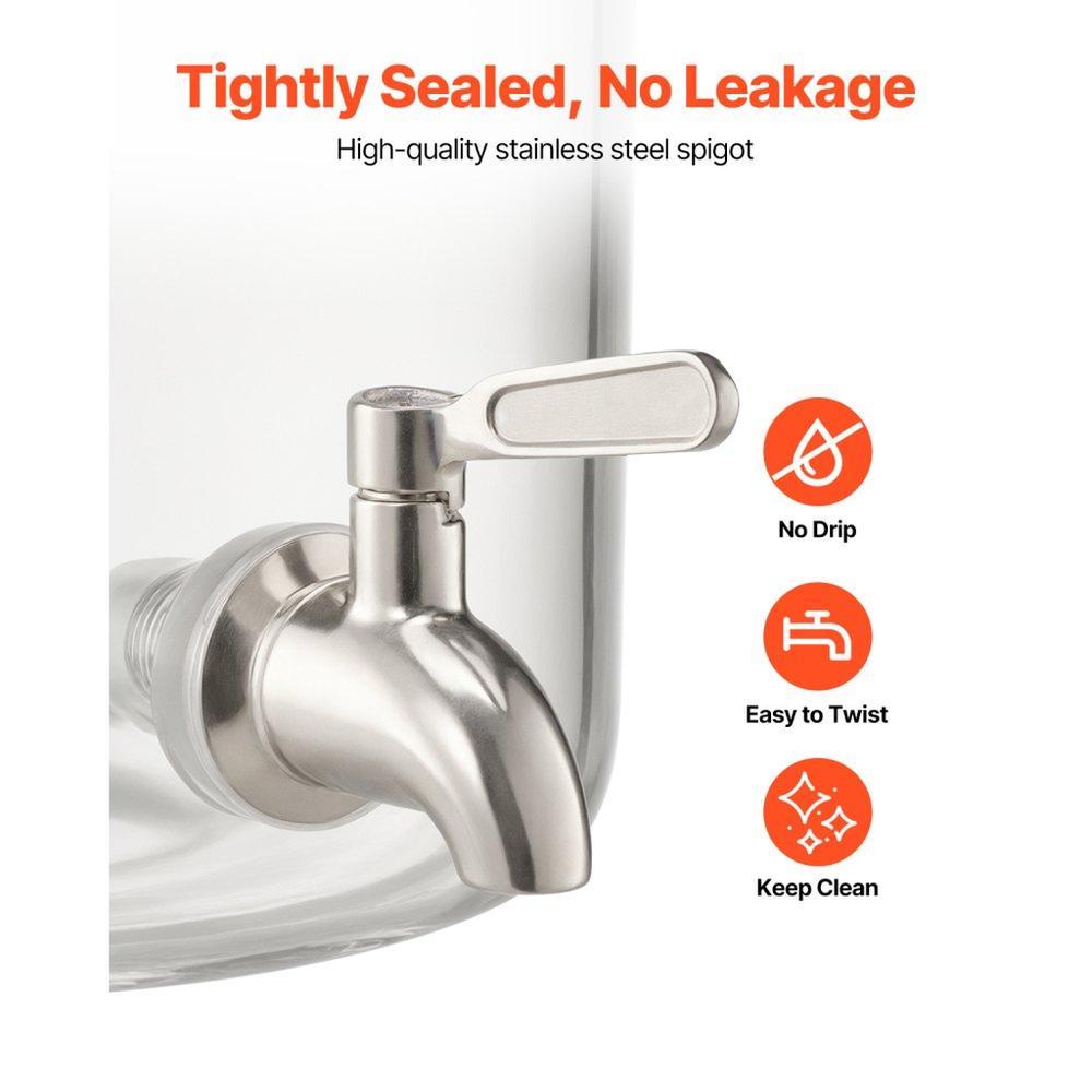 No Drip Spigot: Equipped with a tightly sealed stainless steel spigot, the drink dispenser is convenient for dispensing without leakage, so you won`t have to worry about cleaning spilled drinks. It helps keep your drink station clean and aesthetic
