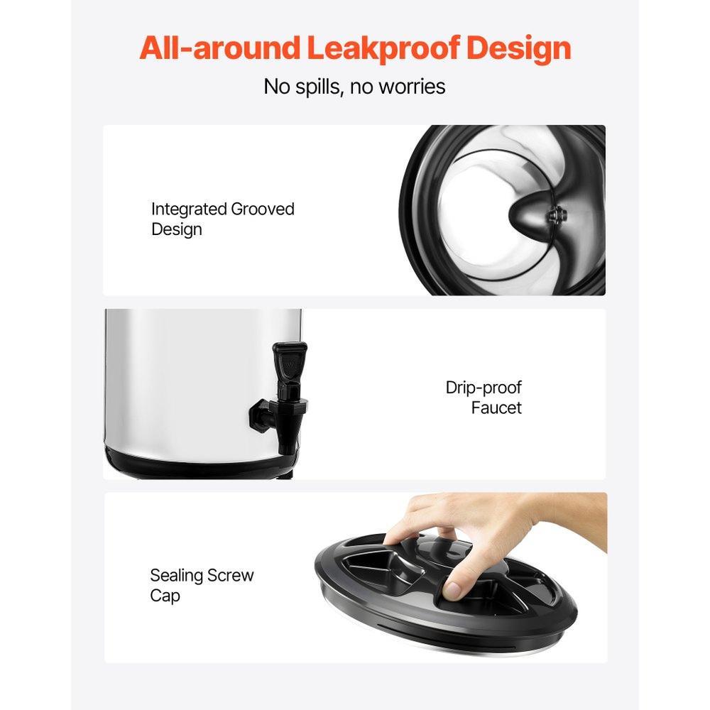 Leak-Proof Sealing: This hot beverage dispenser features a secure screw-on lid and drip-free spigot to prevent leaks. Perfect for daily use and travel. The integrated inner wall and spigot design ensures smooth, spill-free dispensing every time