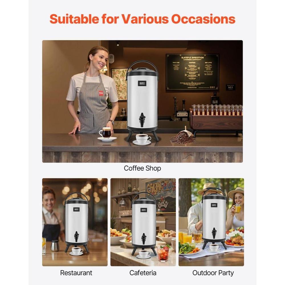 Real-Time Temperature Display: Built-in temperature display lets you monitor drinks in real-time, ensuring perfect hot or cold serving. Large capacity suits commercial use, making this insulated beverage dispenser ideal for busy beverage stations