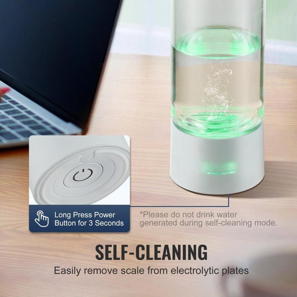 Self-Cleaning Function: Prolonged use of the bottle may lead to scale buildup during electrolysis. Our hydrogen water generator bottle features a 3-minute self-cleaning cycle