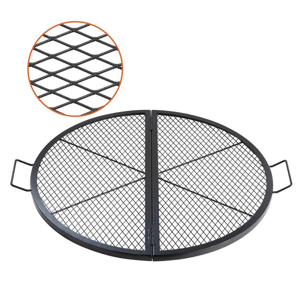 X-Marks Fire Pit Grill Grate, Foldable Round Cooking Grate, Heavy Duty Steel Campfire BBQ Grill Grid with Handle and Support X Wire, Portable Camping Cookware for Outside Party, 36 Inch Black
