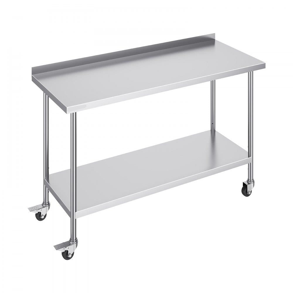 User-Friendly Design: Featuring 3-level adjustable shelves, this work table offers the most user-friendly and practical functionality. Simply adjust the shelf height with screws to accommodate items of different sizes. Equipped with 4 swivel casters, including 2 with brakes, the table remains stable and can be easily moved to any location. The high rear backsplash prevents items from falling off and guards against water splashes.